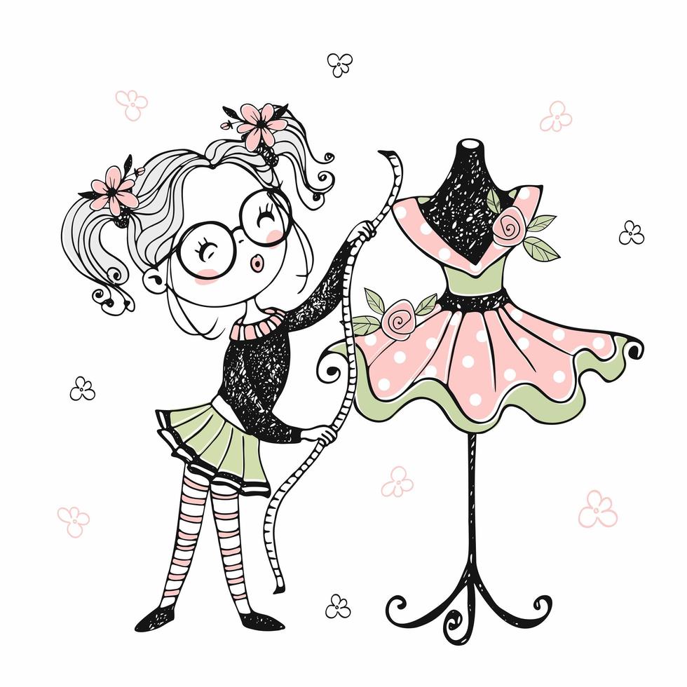 A Cute Little Seamstress Shows Off The Dress 1822594 Vector Art At Vecteezy